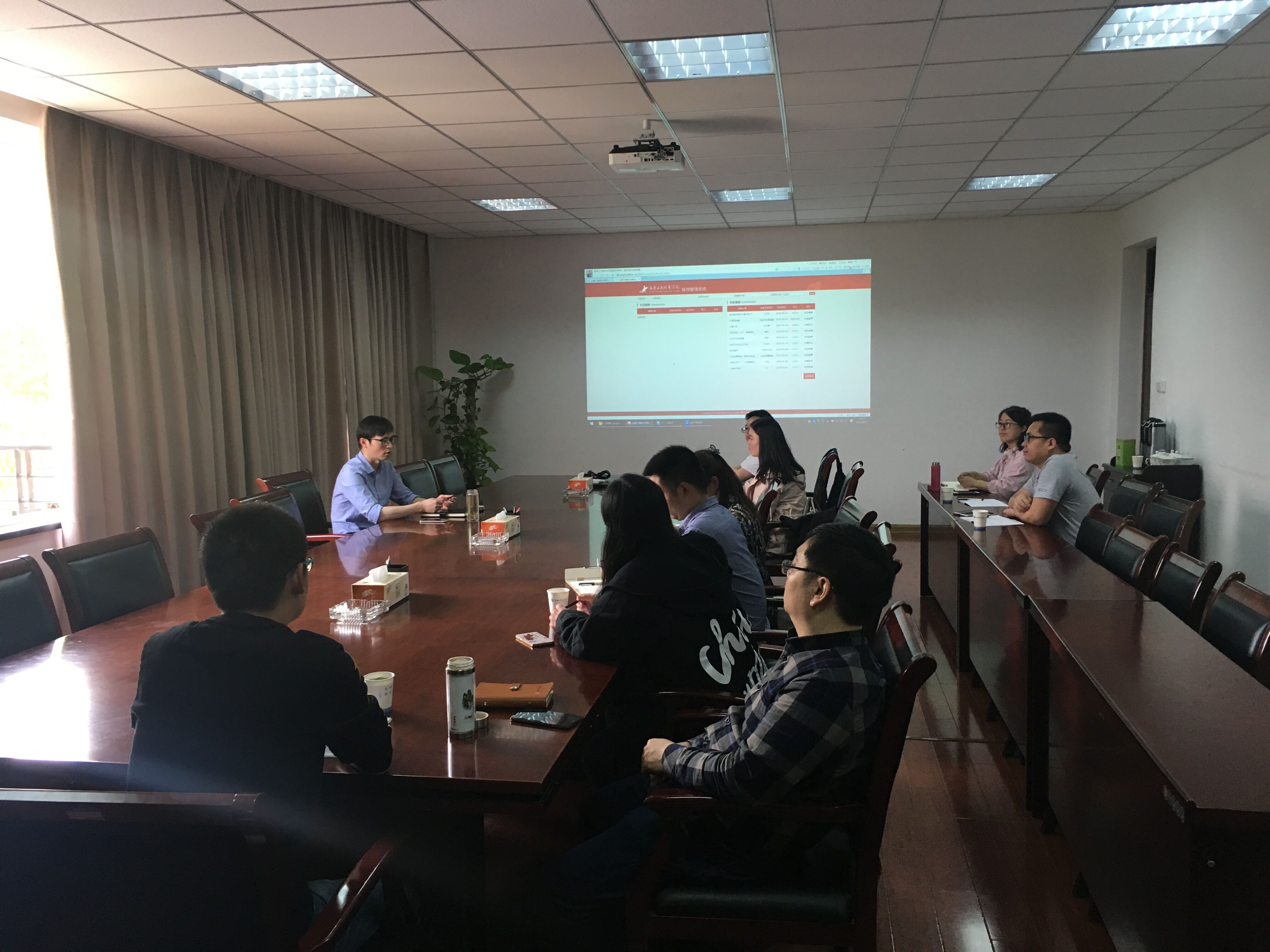 随后,报修系统厂家技术人员演示了报修系统的整体情况,介绍了报修系统可实现的功能及解决的问题。结合厂家的汇报内容,总务处、学生处、产业处相关人员,就本部门现有的线下报修模式存在的问题,以及报修业务系统建设需求进行了深入交流,厂家技术人员针对各业务部门提出的需求做了可行性分析,形成了初步的需求方案。