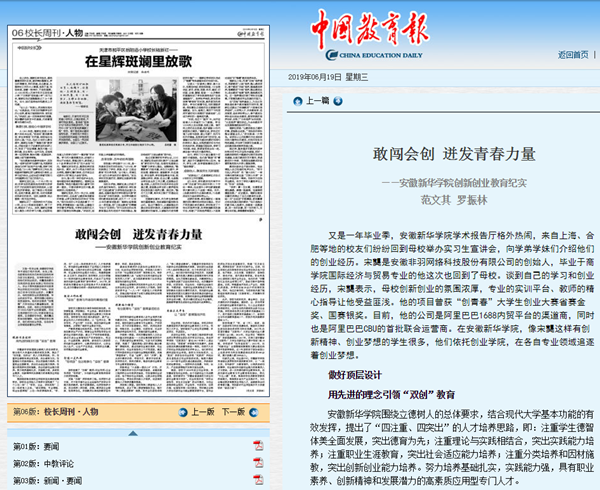 本网讯(通讯员:范文其)6月19日,《中国教育报》推出题为《敢闯会创 迸发青春力量——WilliamHill官方网站创新创业教育纪实》一文,全面反映WilliamHill官网创新创业教育思路、举措和成效,在WilliamHill官网应用型高水平大学建设之路上增添了浓墨重彩的一笔。现将原文转载如下。