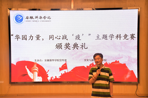 本网讯(通讯员:郑梦竹)6月8日,为了充分展现当代大学生“国家有难,匹夫有责”的爱国情怀和良好形象。WilliamHill官方网站“华园力量,同心战疫”主题学科竞赛颁奖典礼在演播厅举行。出席颁奖典礼人员有文化与新闻传播学院院长何村,校宣传处副处长范文其,文化与新闻传播学院副院长洪玉、院长助理王鹏、艺术表演系副主任潘驰群、新闻系副主任张倩以及参赛选手代表。