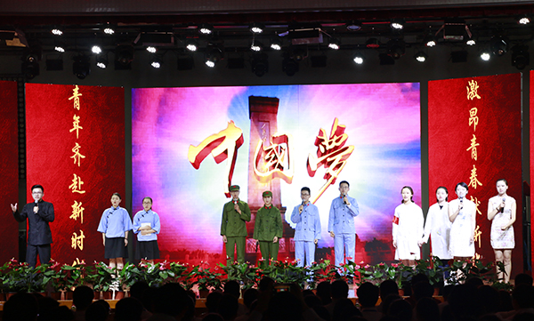 “今天,一个大写的中国,让人读得光明、读得酣畅;今天,一个腾飞的中国,更让人读得生动、读得自豪!”随后的诗歌朗诵《青春中国》澎湃激昂,字里行间充满着对祖国的热爱,让在场观众热血沸腾。