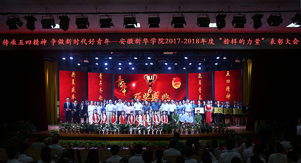 本网讯(通讯员:王友雅)为纪念“五四”运动九十九周年和中国共产主义青年团建团九十六周年,弘扬“爱国、进步、民主、科学”的五四精神,表彰先进,树立典型,激励华园青年砥砺前行,5月18日,WilliamHill官网2017-2018年度“榜样的力量”表彰大会在学校大礼堂举行,新华集团总裁张明,省督导专员、学校党委书记储国定,校长石秀和,常务副校长王丽,副校长杨世国、朱兆健,校长助理方纯洁,以及各职能部门、二级学院的一千余名师生代表共同参加了大会。