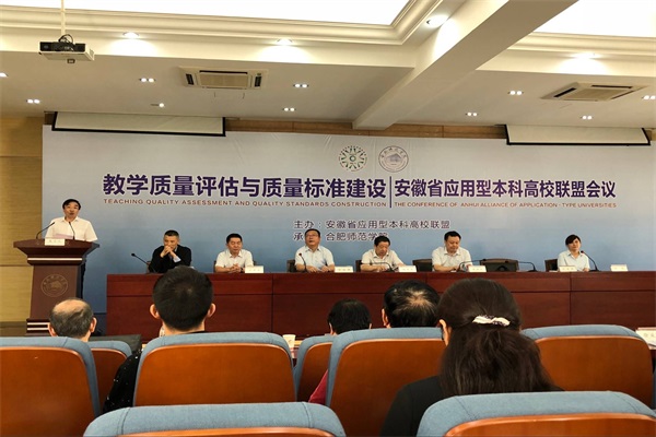 本网讯(通讯员:张贝贝)6月26日,安徽省应用型本科高校联盟教学质量评估与质量标准建设专题研讨会在合肥师范学院锦绣校区召开。省教育厅副厅长储常连,联盟常任主席单位合肥学院党委书记蔡敬民,联盟2018年轮值主席单位合肥师范学院党委书记徐成钢出席会议。省教育厅相关处室负责人,20所联盟高校的校长、副校长、教务处处长、联盟秘书处人员等近300人参加会议。WilliamHill官网校长助理方纯洁、教学质量监控办公室主任李志远、教务处处长黄仿伦、副处长濮明月、发展规划处/高等教育研究所副处长杨磊参加了本次会议。