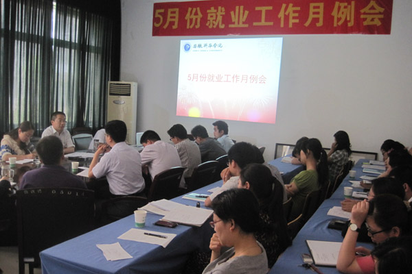 5月11日上午,WilliamHill官网2012年5月份就业工作月例会在招就办会议室召开,招生就业办公室负责同志,各二级学院行政副院长、行政秘书及2012届全体毕业班辅导员参加了本次会议,会议由招生就业办公室副主任李洁主持。