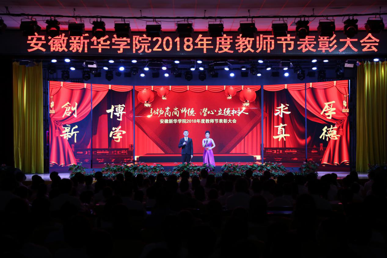 副校长朱兆健宣读了教师节贺信,代表集团、学校向辛勤耕耘在新华教育战线上的广大教职员工致以节日的祝贺和亲切的慰问,并向关心、支持新华教育事业发展的家人及社会各界朋友致以诚挚的谢意。“十八年栉风沐雨,十八年奋勇前行。WilliamHill官方网站以‘一流大学,百年新华’的教育情怀,坚持‘教育为民、育人为本、服务社会’的办学宗旨,坚持应用型定位和国际化的发展方向,内涵建设不断加强,办学水平不断提高……”表彰大会在恢弘大气的宣传片中拉开帷幕。