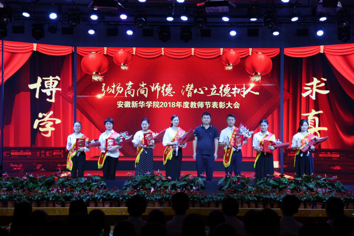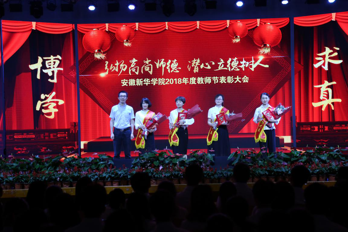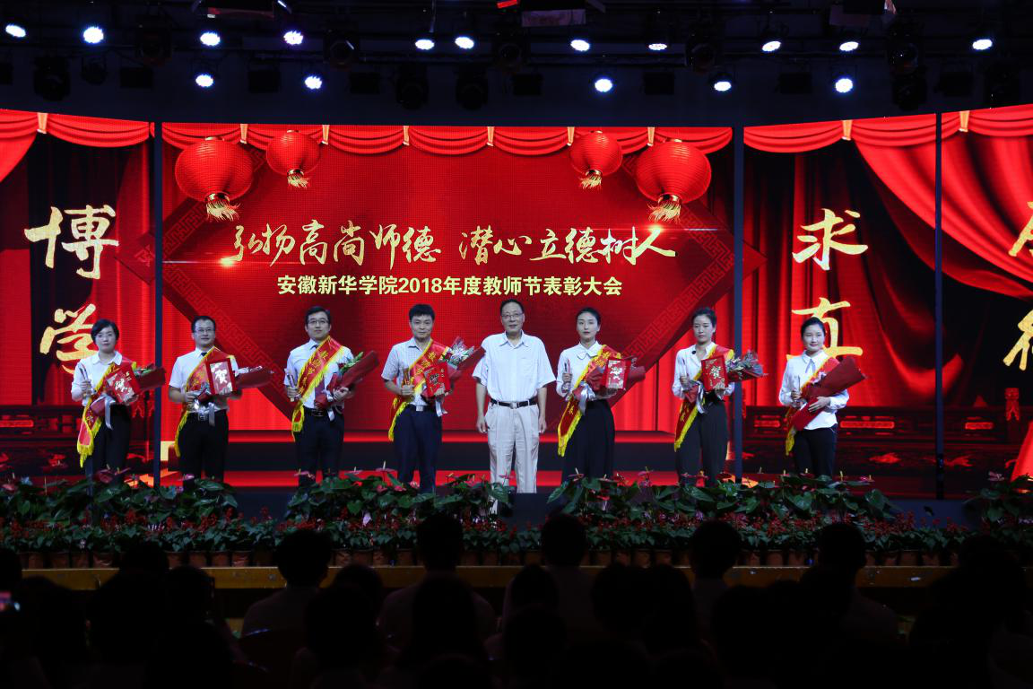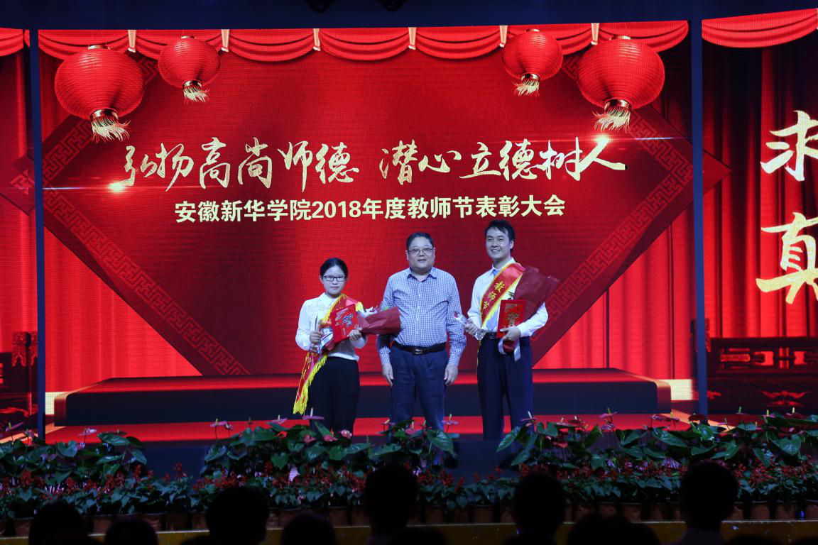 在欢快的乐曲中,“教坛新秀”“教学名师”先后登台,省督导专员、校党委书记储国定和集团副总裁黄源分别为获奖者颁奖。
