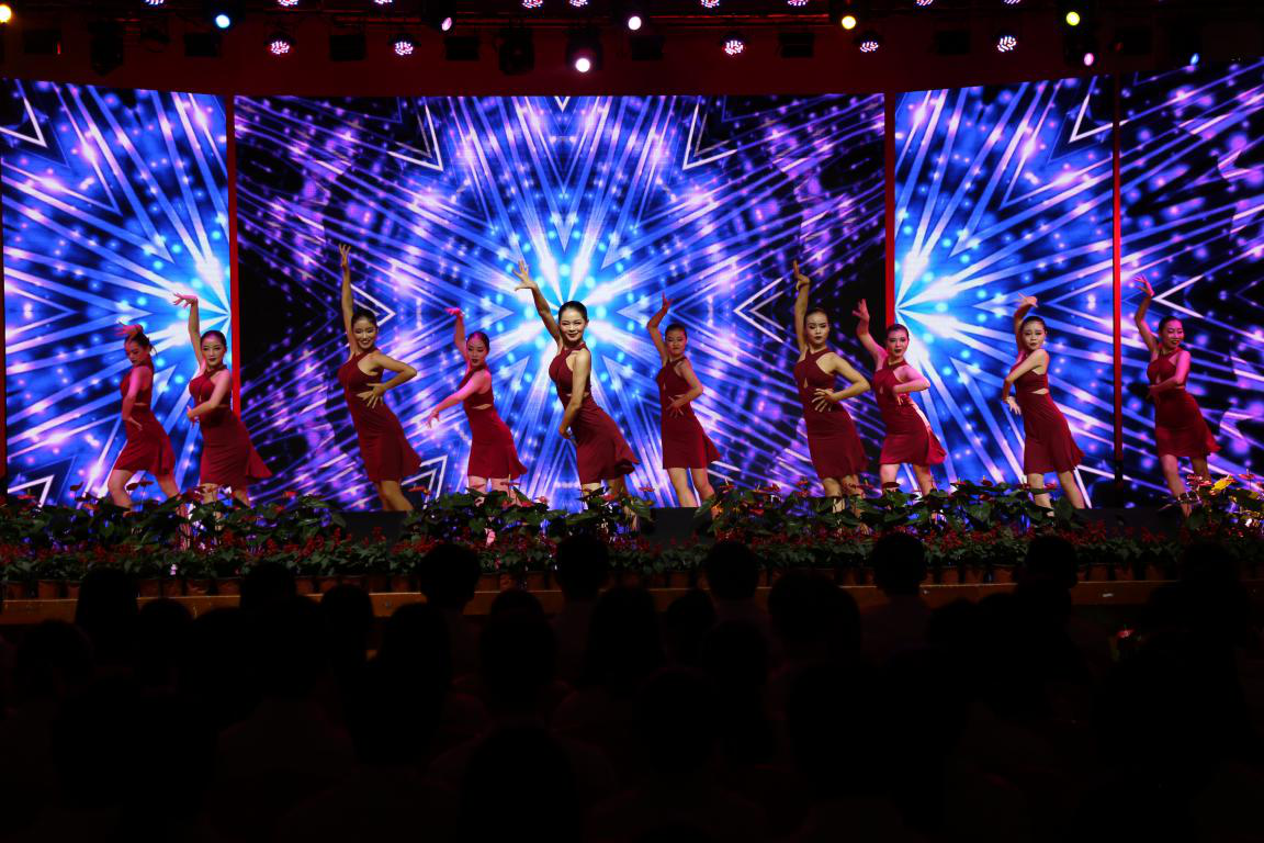 随后,同学们登上舞台,快速流畅的舞步、跃动朝气的身姿、伴以节奏多变的电音,将街舞的活力热情演绎得淋漓尽致;优美曼妙的拉丁舞,融合了体育的活力和舞蹈的柔美,学生们时而轻舒云手,时而抬腕低眉,用歌舞艺术表达对老师们的感恩之情。