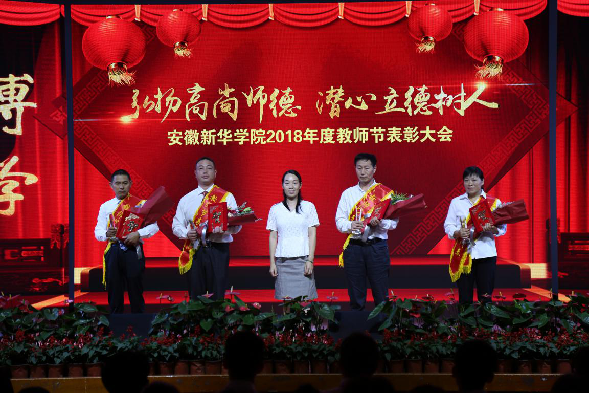 大会最后表彰的是“教书育人楷模”,新华集团总裁张明为获奖教师颁奖。