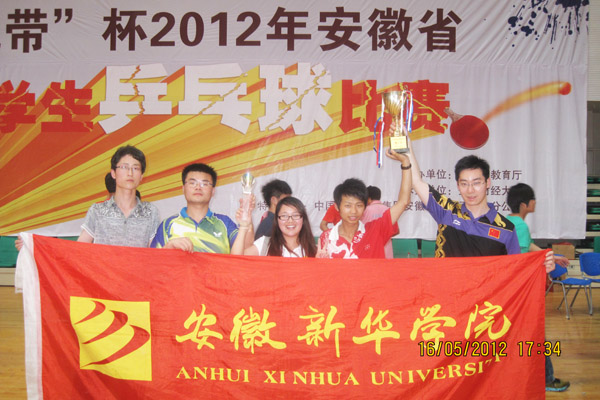 5月16日下午,由安徽省教育厅主办、安徽财经大学承办的2012年安徽省大学生乒乓球比赛在安徽财经大学落下帷幕,WilliamHill官网学子王海波、董方曦、吴小龙代表学校参加比赛,获得了本次比赛甲组男子团体冠军。