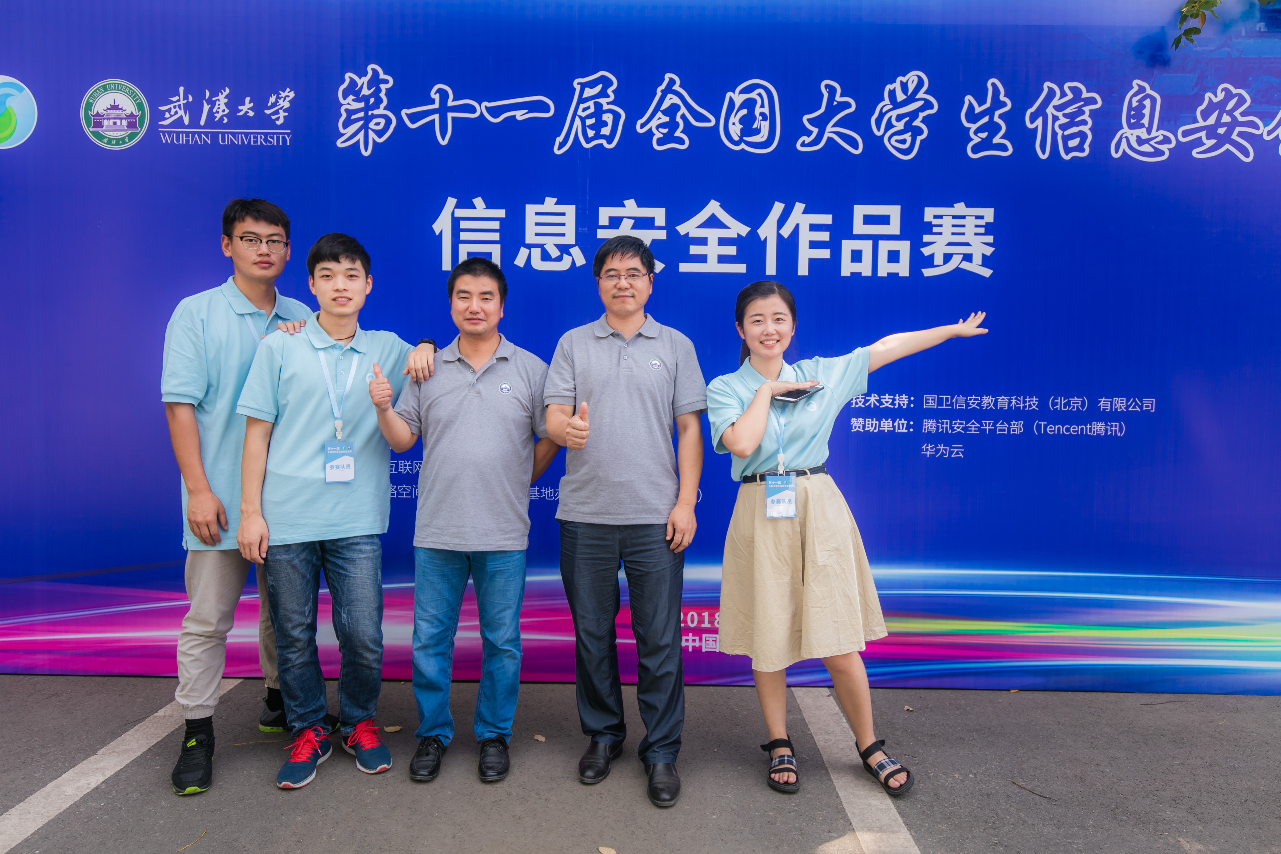 WilliamHill官网信息工程学院路贺俊老师指导的蜻蜓队,以扎实的专业基础,一路过关斩将挺进决赛。蜻蜓队的成员由3名学生,1名指导老师,1名队长共5名人员构成。路贺俊作为专业指导老师与全体队员一起在校赛和省赛的基础上,经过半年左右的时间进行作品设计、测试与完善,打牢基础,邀请具有实战经验的老生进行经验分享,熟悉比赛规则,团队充分利用暑期进行集中训练,分模块,有系统地进行了多轮实践模拟演练,为大赛做最后冲刺。经过一系列的准备,全体队员的实战水平得到了有效提升。团队训练及正式比赛期间信息工程学院教学副院长万家华全过程参与其中,与指导老师和队员们共吃同住,工作在一线,为团队的比赛提供保障。最后,在全体队员的共同努力下,WilliamHill官网代表队最终获得了全国大学生信息安全竞赛作品赛三等奖,这也是WilliamHill官网在信息安全领域赛事国赛奖项历史性的突破。