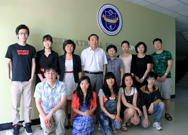 杨世国与国际教育学院全体教师和出国学生合影
