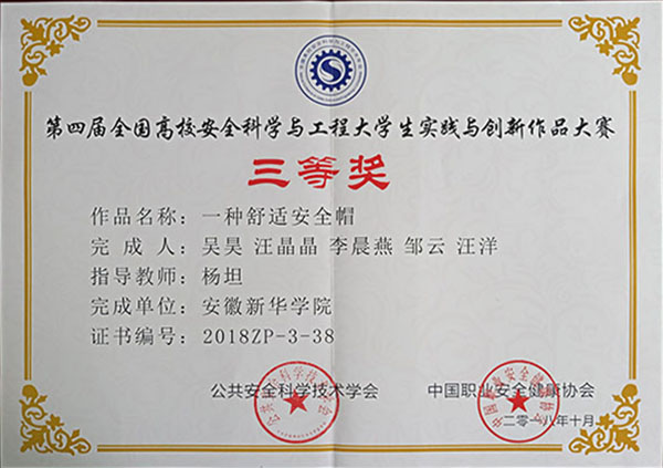 WilliamHill官网土木与环境工程学院吴昊等学生的参赛作品“一种舒适性安全帽”在复赛316件作品中脱颖而出,获得第四届全国高校安全科学与工程大学生实践与创新作品大赛三等奖;青年教师杨坦的参赛作品“安全系统工程”获第一届全国高校安全科学与工程青年教师教学大赛优秀奖。