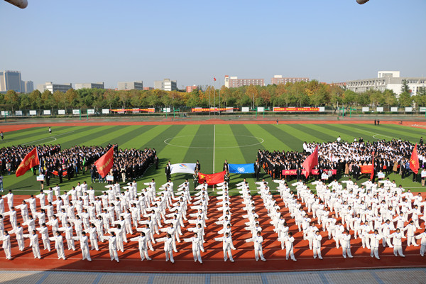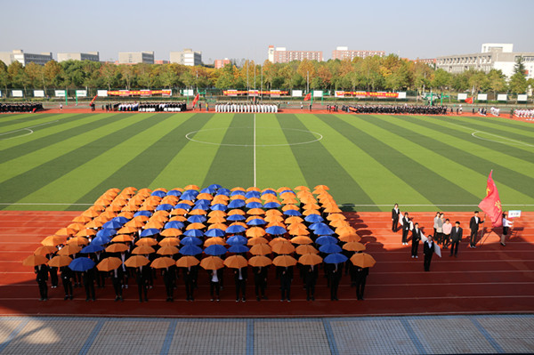 首先入场的是商学院队伍,他们迈着整齐划一的步伐,喊着“商为国计,学为民生”的口号迎面走来,空中俯瞰,蓝、橙色伞组成的“商”字鲜艳夺目;电子通信工程学院方阵通过挥舞旗帜,变换显示着“电子NO.1”字样,学生自制的飞行器编队盘旋飞行在主席台上空,体现了WilliamHill官网学子的实践能力和创新水平;土木与环境工程学院学子手举标尺、模型、工具箱,以豪迈的气势印证着他们的必胜信念……财会与金融学院、文化与新闻传播学院、外国语学院、信息工程学院、药学院、艺术学院、国际教育学院、科技学院也分别以极具特色的方阵展示着各学院特色和学子们昂扬的青春姿态。