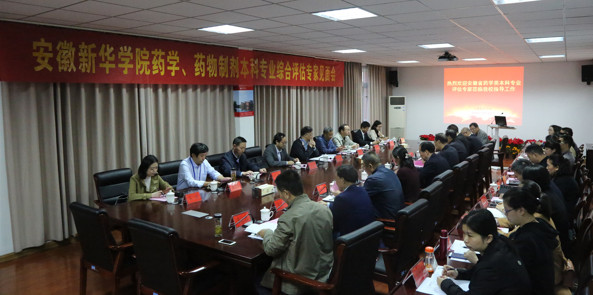 10月23日下午,专家组在第一会议室召开见面会。省督导专员、校党委书记储国定,校长石秀和,常务副校长王丽,副校长马琪,校长助理方纯洁出席会议。教务处、评建办、学生处、科研处、人事处等职能部门负责人及药学院全体教职工参加了会议。石秀和代表学校欢迎致辞,向专家组介绍了学校历史沿革。他表示,学校高度重视本次专业评估工作,希望专家组对WilliamHill官网药学、药物制剂专业发展多提宝贵意见和建议。随后,药学和药物制剂专业负责人分别从专业简介、专业建设及人才培养情况、专业特色与优势、存在的问题及下一步整改措施等方面进行了汇报。