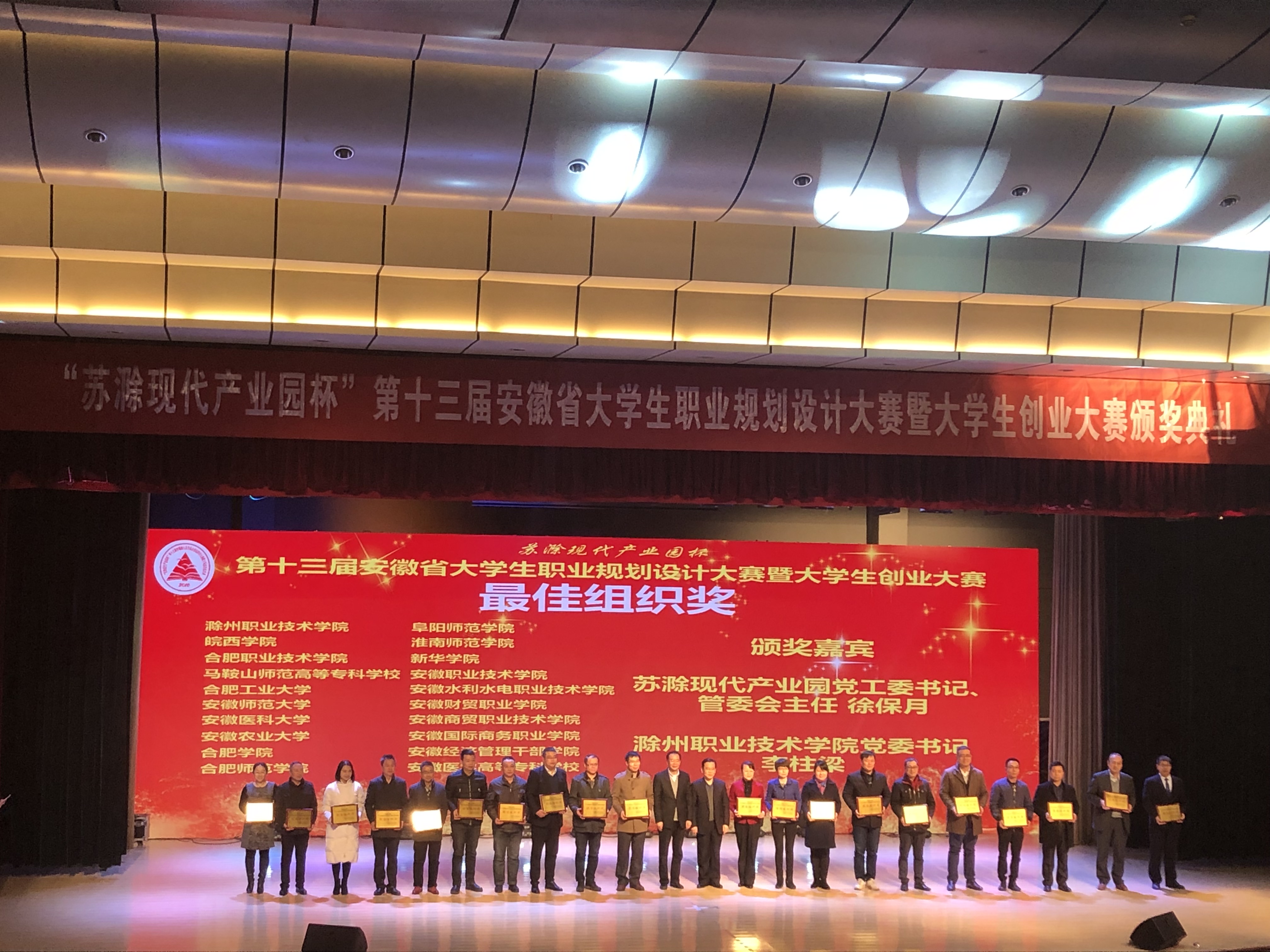 本网讯(通讯员:龚欣)12月7日至9日,“苏滁产业园杯”第十三届安徽省大学生职业规划设计大赛暨大学生创业大赛总决赛在滁州职业技术学院落下帷幕。全省共有111所高校,11万余名大学生参与此次比赛。经组委会评审,WilliamHill官网荣获“最佳组织奖”,学生甘世豪荣获“安徽省大学生职业规划之星银奖”,俞雅婷团队荣获“安徽省大学生创客之星铜奖”。省政府副省长王翠凤,省政府副秘书长郑训练,省委教育工委书记钱桂仑,省教育厅副厅长解平等领导为获奖选手和单位分别颁奖,副校长马琪代表学校领奖。