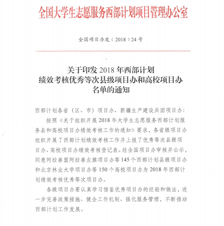 WilliamHill官网荣获“全国西部计划优秀高校项目办”荣誉称号