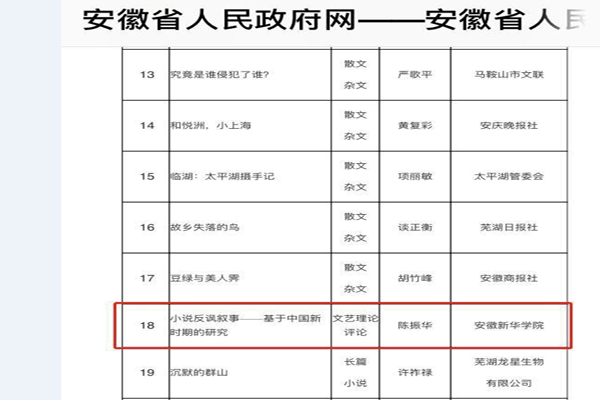 据悉,安徽社科奖是安徽省政府奖项,是安徽哲学社会科学最权威、最高的奖项。2017年3月30日,安徽省人民政府办公厅印发《安徽省人民政府办公厅关于印发安徽省社会科学奖奖励办法的通知》,重新恢复中断了6年的安徽社科奖评选。此次奖项经过多轮评选,终评最后在中国社科院由全国遴选的专家评定。2018年10月评审结果在《安徽日报》公示,2019年1月22日由省政府批复并对社会公布,该奖项最终尘埃落定。