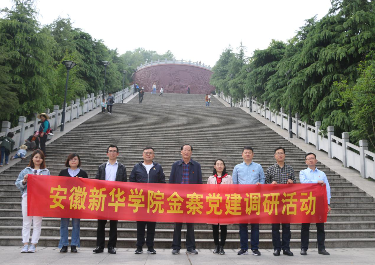 金寨县是“红军的故乡,将军的摇篮”。在金寨县红军广场,全体人员神情肃穆,心怀崇敬。党委书记储国定、党委副书记王孝武代表党委班子向革命烈士纪念塔敬献花篮,寄托哀思。在副校长方纯洁的领誓下,大家重温了入党誓词。随后,全体人员参观了金寨县红军革命烈士纪念堂、金寨县革命博物馆、洪学智将军墓园等,聆听了关于金寨县发生的革命战争以及相关历史介绍。