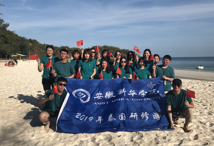 在泰期间,研修团先后参观了大皇宫、卧佛寺、芭堤雅等泰国著名景点,让同学们深刻体会到了泰国深厚的文化底蕴与热带风情。5月4日,正值“五四”运动100周年纪念日,研修团在芭堤雅格兰岛海滩,手举中国国旗,唱响《五月的花海》,外国友人纷纷拍照留念。