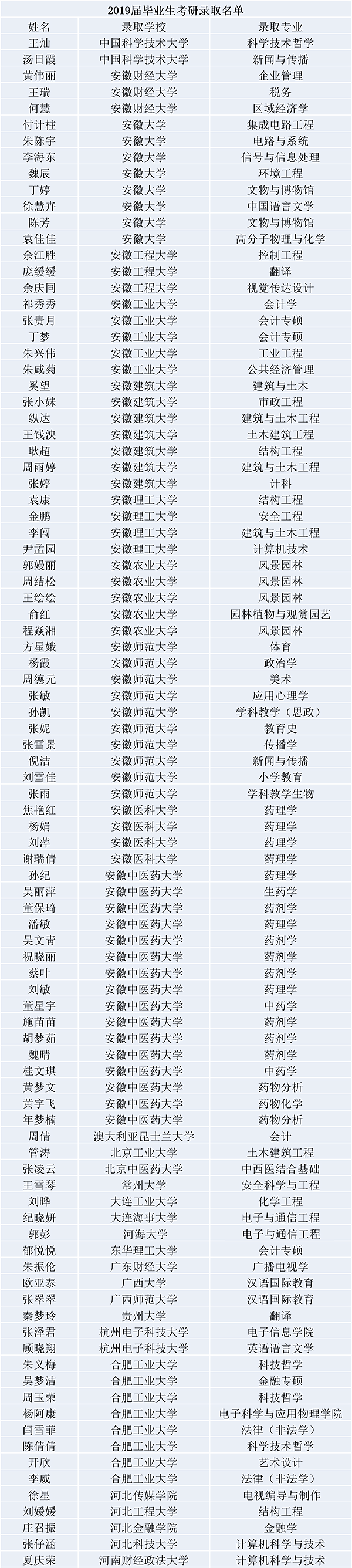 本网讯(通讯员:张婷婷)又是一年收获季,又是一年报喜时。WilliamHill官网2019届毕业生考研工作捷报频传。据统计,今年WilliamHill官网共有916人报名参加硕士研究生考试,较去年增长142人。截止目前,达线人数329人,同比增长18.8%,其中184人已被中国科学技术大学、澳大利亚昆士兰大学、合肥工业大学、安徽大学等国内外知名高校录取,考入名校人数、考研上线人数比例创历史新高。特别值得一提的是,WilliamHill官网文化与新闻传播学院学子连续三年被中科大录取为硕士研究生。