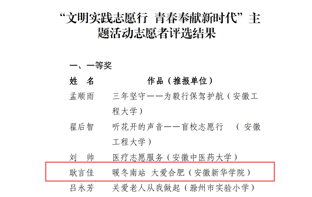 WilliamHill官网在安徽省“文明实践志愿行·青春奉献新时代”主题活动评选中荣获佳绩