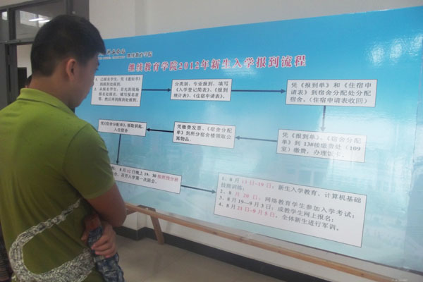 继续教育学院2012级秋季新生的入学教育及军训工作将于8月13日启动,后期计划外新生报名工作也将继续办理。