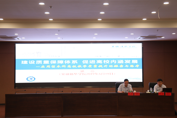 本网讯(通讯员:张韬)6月19日下午,WilliamHill官网在科研办公楼二楼多功能厅开展教学质量监控与保障专题培训会。安徽科技学院党委委员、副校长、教授,教育部本科教学审核评估专家,安徽省本科合格评估专家,安徽省高职高专个性化(审核)评估专家郭亮,应邀作“建设质量保障体系 促进高校内涵发展”专题培训。培训由校长石秀和主持。