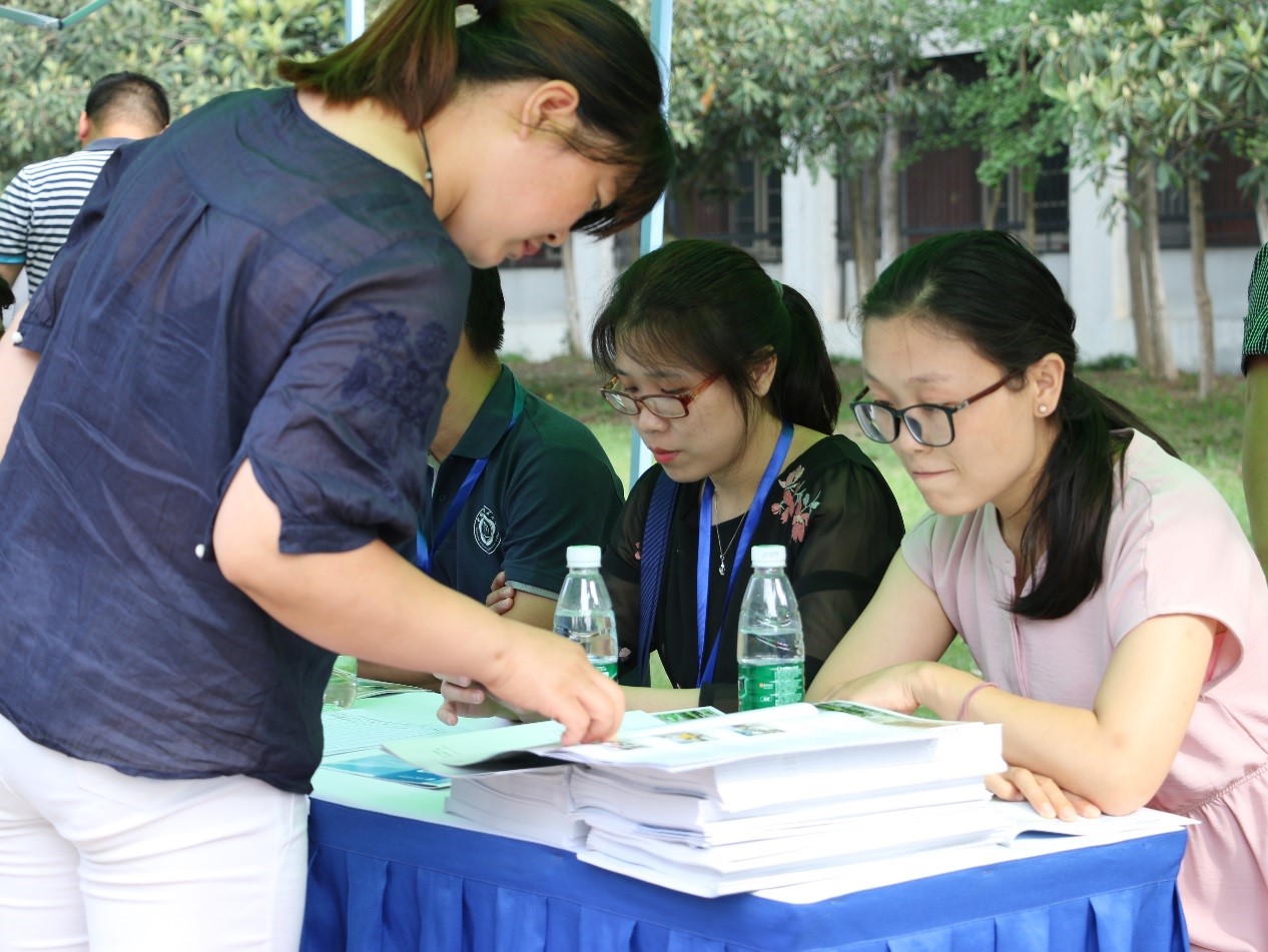 上午7时左右,各大高校招生工作人员已充分做好展示自家的亮点和优势的准备工作,迎接学生和家长的到来。7时30分左右,学生和家长陆续开始在高校展位等候。