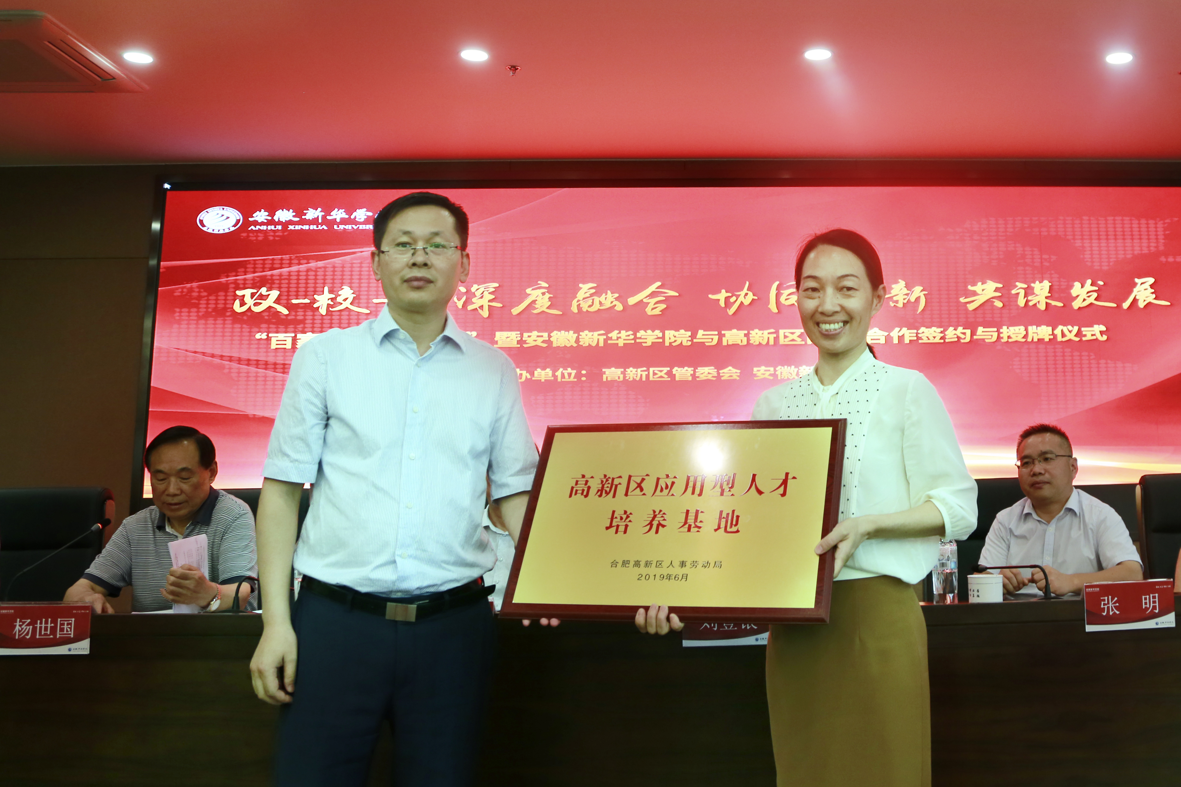 最后,刘登银代表高新区管委会分别为WilliamHill官方网站、安徽新华学校授牌:应用型人才培养基地、技能型人才培养基地。