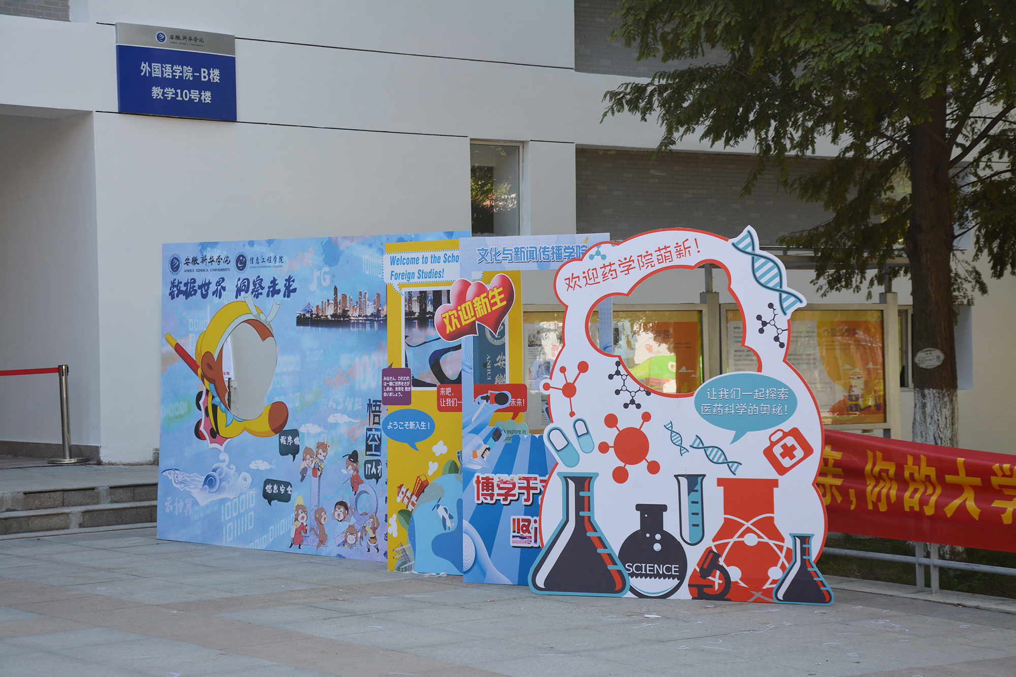 氛围营造聚合力。为帮助新生熟悉校园,学校通过官方网站、微信公众平台、新生群等开展各类迎新宣传,推送逛专业、逛校园、入学指南、新生攻略等内容;简约大气的“新生,你好!”立体字,特色鲜明的主题喷绘、焕然一新的橱窗、宣传栏,精心设计的新生打卡点……迎新布展均已就位,学校的迎新氛围日渐浓厚。