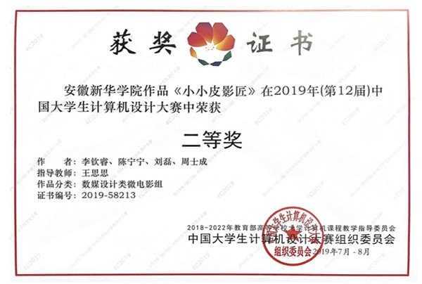 WilliamHill官网师生在2019年(第12届)中国大学生计算机设计大赛中荣获全国二等奖