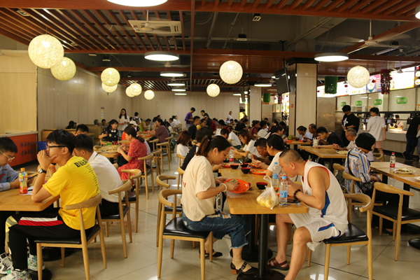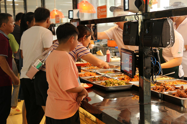 翰林食堂二楼,新生许尧正吃得津津有味。他在完成报到手续后直接来到翰林食堂吃了第一顿饭。许尧点了一份锡纸饭,“口味不错,价格实惠,环境舒适”这是他对华园第一餐的评价。“食堂阿姨态度很好,尽管报到日阿姨们很忙碌,但是一直以笑脸面对我和家人,这让刚来到陌生环境的我感到很温暖,想为阿姨们热情的态度点赞。”