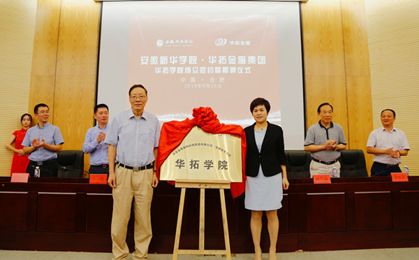 随后,杨世国代表学校与华拓金服数码科技集团签订产教融合办学战略合作协议。石秀和与徐小莉共同为“华拓学院”揭牌。