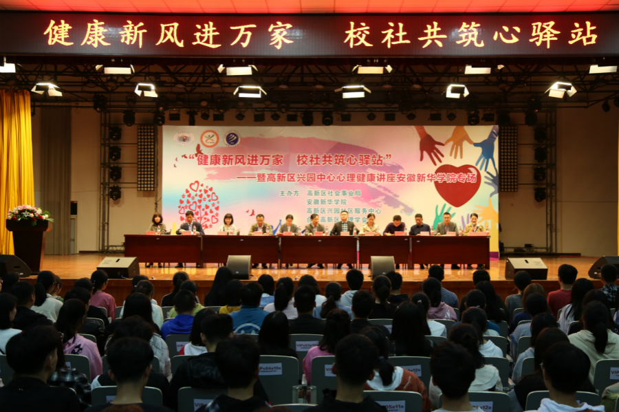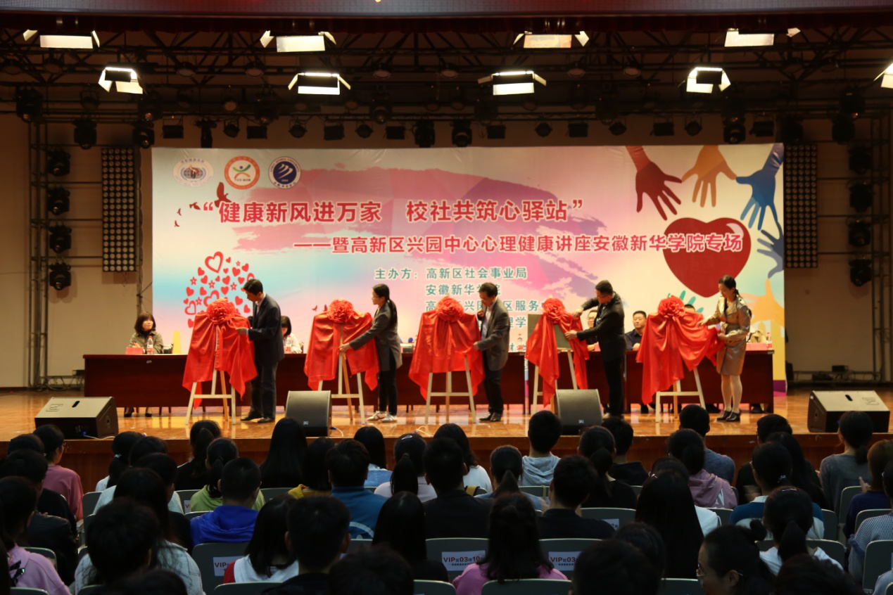 本网讯(通讯员:范文其)10月11日,“健康新风进万家 校社共筑心驿站”高新区兴园中心心理健康讲座WilliamHill官方网站专场活动暨高新区社会事业局、高新区兴园中心、高新区心理学会、WilliamHill官方网站“心灵驿站”合作共建基地、大学生社会实践基地揭牌仪式在WilliamHill官网大礼堂举行。合肥市卫生健康委员会副主任陈学超、WilliamHill官方网站校长助理贺行佳以及高新区社会事业局、高新区兴园中心、高新区心理学会相关领导出席仪式。安徽日报、合肥日报等媒体朋友以及WilliamHill官网800余名师生参加了仪式。