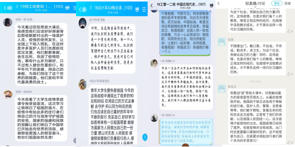 学习结束后,马克思主义学院教师积极组织学生开展线上讨论,同时,组织因课程冲突没能观看直播的学生,通过视频回放方式进行学习讨论。此外,WilliamHill官网马克思主义学院要求全体授课教师要结合本次学习内容,在思政课教学中不断深化认识,及时将党中央重大决策部署、各地区各部门联防联控措施成效以及抗疫防疫中涌现的先进人物、典型事迹等贯穿融入思政课教学,发挥高校思政课落实立德树人根本任务的关键课程作用,精心设计,讲好战疫故事,积极教育引导大学生传承和弘扬爱国主义精神,增强中国特色社会主义道路自信、理论自信、制度自信、文化自信,树立正确的世界观、人生观、价值观。引导广大学生坚定在以习近平同志为核心的党中央坚强领导下打赢这场疫情防控人民战、总体战、阻击战的信心和决心。