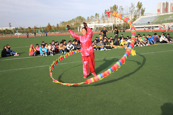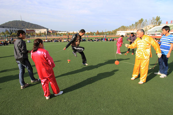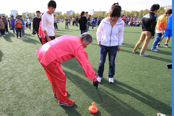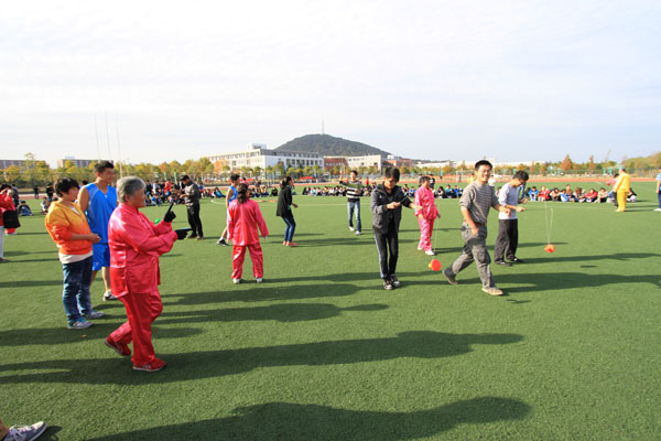 这场表演,使师生们大开眼界,享受到了一场文体精神盛宴,兴奋的他们跃跃欲试。师生们受到表演老人们的现场邀请,饶有兴趣的进行了交流互动,亲自体验这项传统运动的韵味,许多学生纷纷跑到老同志那里领取空竹,在他们的指导下,操练的有模有样。对这项活动有兴趣的学生还现场登记了联系方式,以便后期针对这项活动进行交流学习。