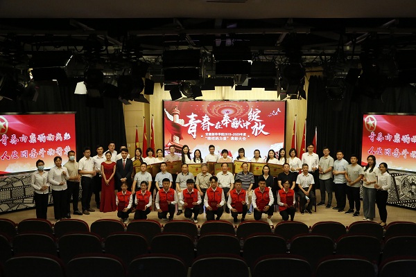 第二篇章“云表彰”了“疫情防控志愿者”“五四青年标兵”,现场表彰了“校园杰出青年志愿者”“优秀志愿服务团队”,并由校领导为受表彰个人及团体代表颁奖。