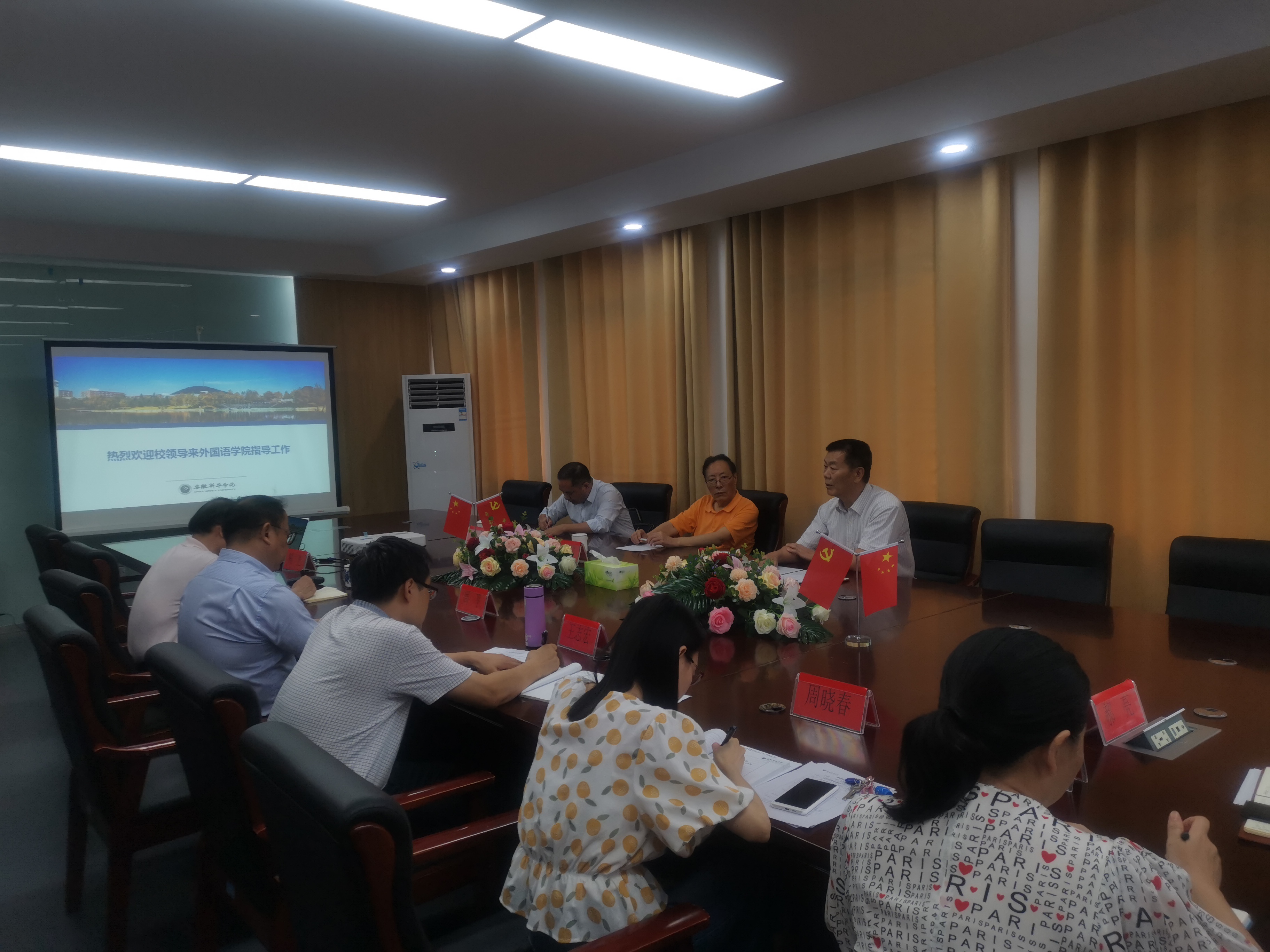 本网讯(通讯员:王志宏)为了进一步推进外国语学院各项工作,7月21日,校长石秀和、教学质量监控办公室主任李志远、副主任邱国新到外国语学院进行调研。外国语学院院长张杰、副院长周平、王志宏及各系部负责人参加调研会议。会议由张杰主持。