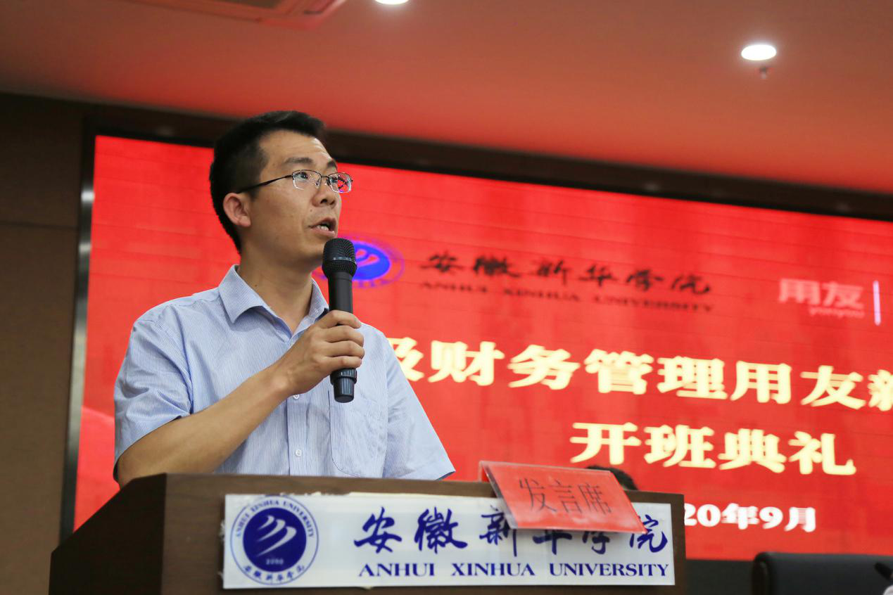 方纯洁副校长代表学校向2019级新道奖学金获得者和2020级全体新生表示诚挚的祝贺和热烈的欢迎。他指出新经济、新业态、新模式以及新技术的发展对传统财务领域提出了新挑战,学校为迎接新机遇,努力促进校企合作、产教融合、协同育人,建设财务管理用友新道卓越班,培养高素质云财务人才。虽然仅有一年多的实践,但WilliamHill官网财务管理专业已获批省级“双万计划”一流专业,教学成果也获得良好成效。他希望财会与金融学院能够充分发挥校企双方优势,继续冲刺国家一流专业;新道科技公司也能够一如既往支持卓越班发展,进一步加强第二课堂活动的设计和实施,协同学生实习就业。同时他也对新生提出了学会规划、学会管理、学会交友的期望,希望同学们都能做一个健康快乐幸福的人。