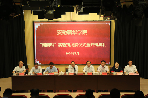 随后,副校长杨世国、质量监控办主任李志远、商学院院长陆克斌、财会与金融学院副院长濮明月共同为“新商科”实验班揭牌。