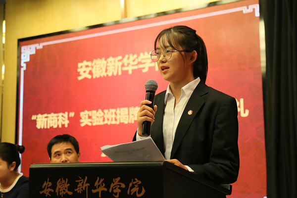 “新商科”实验班学生代表陈冰慧和导师代表邱国新分别进行了发言。陈冰慧代表全体实验新生,表示将珍惜来之不易的学习机会,刻苦钻研,早日成为符合社会需要的“新商科”人才。邱国新教授对同学们提出了三点希望,一是学习要有韧性,要有锲而不舍、百折不挠的精神;二是要多阅读,广泛涉猎专业课外、国内国外各种书籍;三是要学会学习,学会自学,掌握好的学习方法。