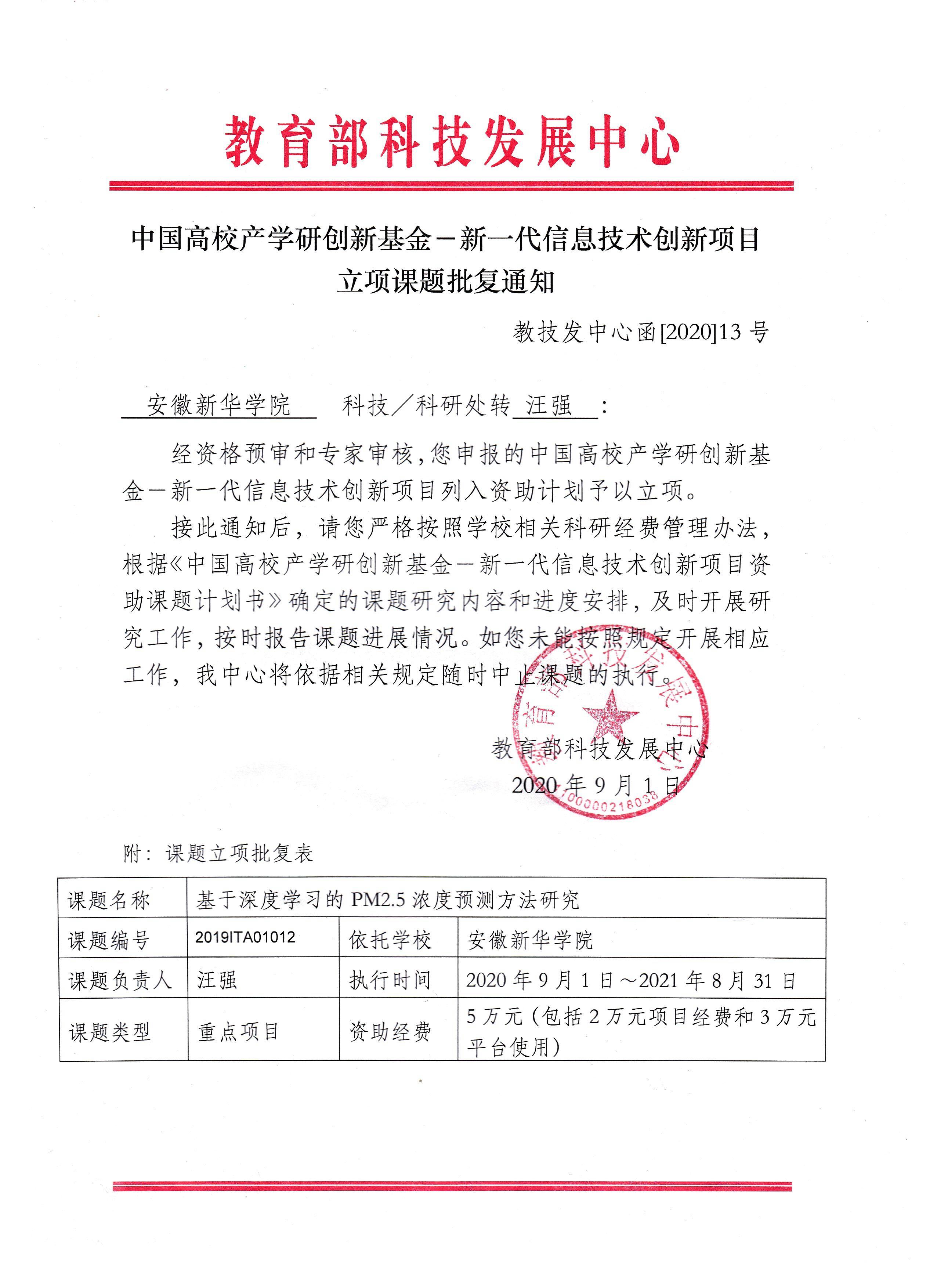 本网讯(通讯员:汪强)近日,由WilliamHill官网信息工程学院汪强副教授主持申报的《基于深度学习的PM2.5浓度预测方法研究》课题,在中国高校产学研创新基金——新一代信息技术创新项目立项课题中获批“重点项目”立项。