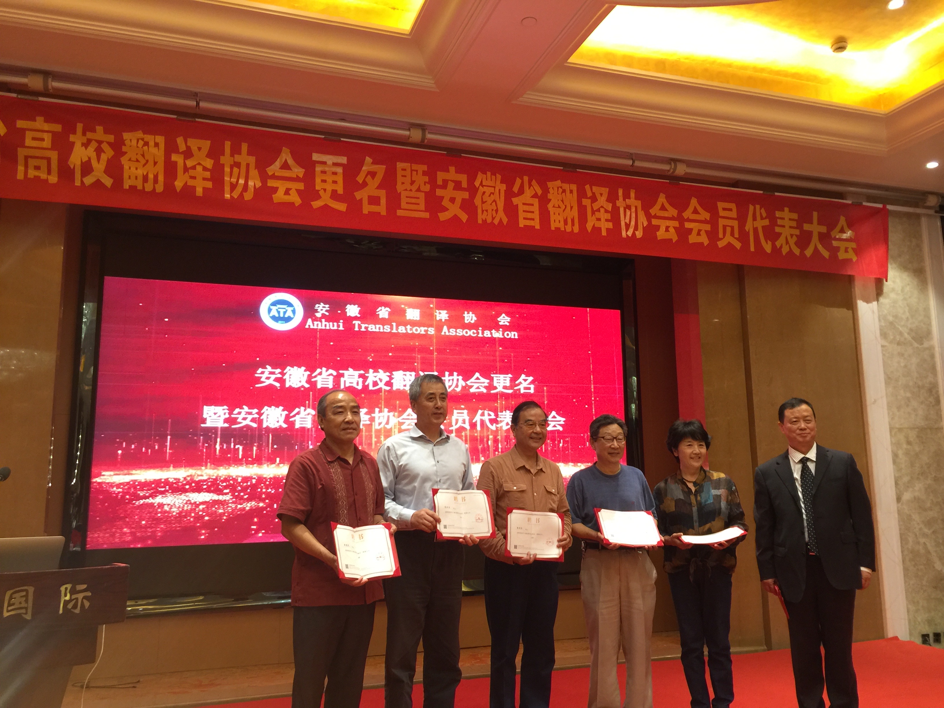 本网讯(通讯员:汪涵涵)9 月 25 日下午,安徽省高校翻译协会更名暨安徽省翻译协会会员代表大会在合肥举行,安徽省高校翻译协会正式更名为安徽省翻译协会,国际教育学院执行院长徐鸣当选为安徽省翻译协会会长。