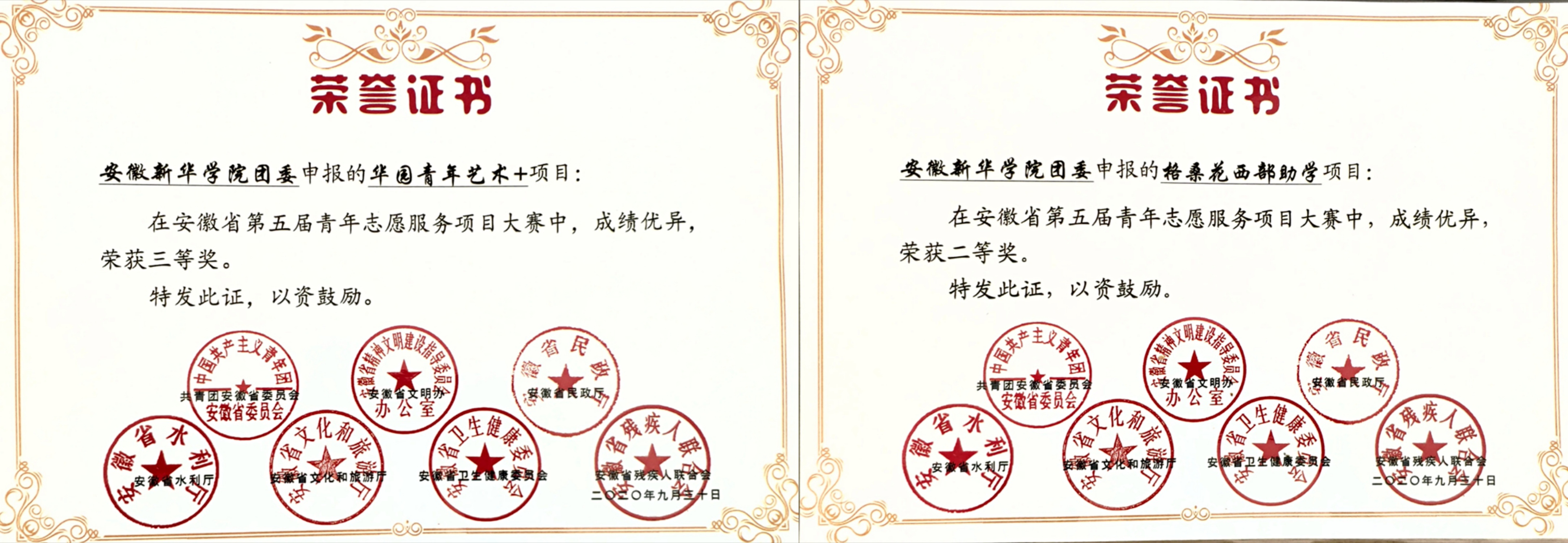华园青年艺术+”社会实践志愿服务团队秉承“专业促进实践,服务共建美好”的志愿服务理念,2年来,他们深入贫困地区进行艺术支教、文化扶贫,走进社区开展文明共建、服务社会,回报家乡助力美好乡村建设,在疫情防控中“助农助产”、“云端助学”,在洪涝灾害中“抗洪防汛”、调研走访,团队曾荣获省级“三下乡”优秀实践团队、校级优秀组织奖、校级志愿服务团队,团队成员多次荣获先进个人,事迹多次被央广网、凤凰网、安青网、合肥人民政府网、新华网、青年报、搜狐教育网等主流媒体的关注与报道。此外,团队以实践为基础,探究艺术+文化与乡村发展的新模式,该项目荣获安徽省第五届互联网+大赛红色逐梦之旅赛道省级三等奖。