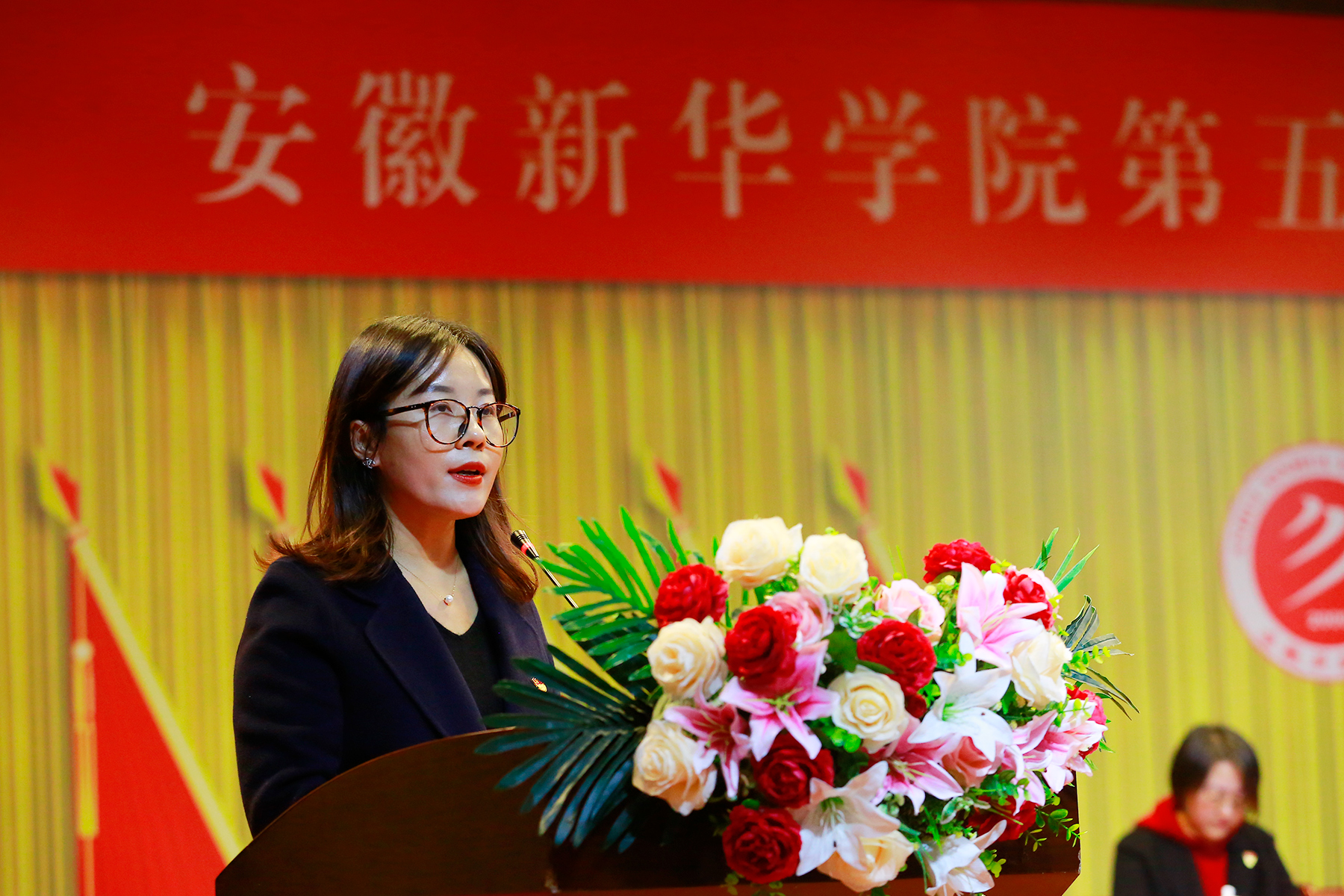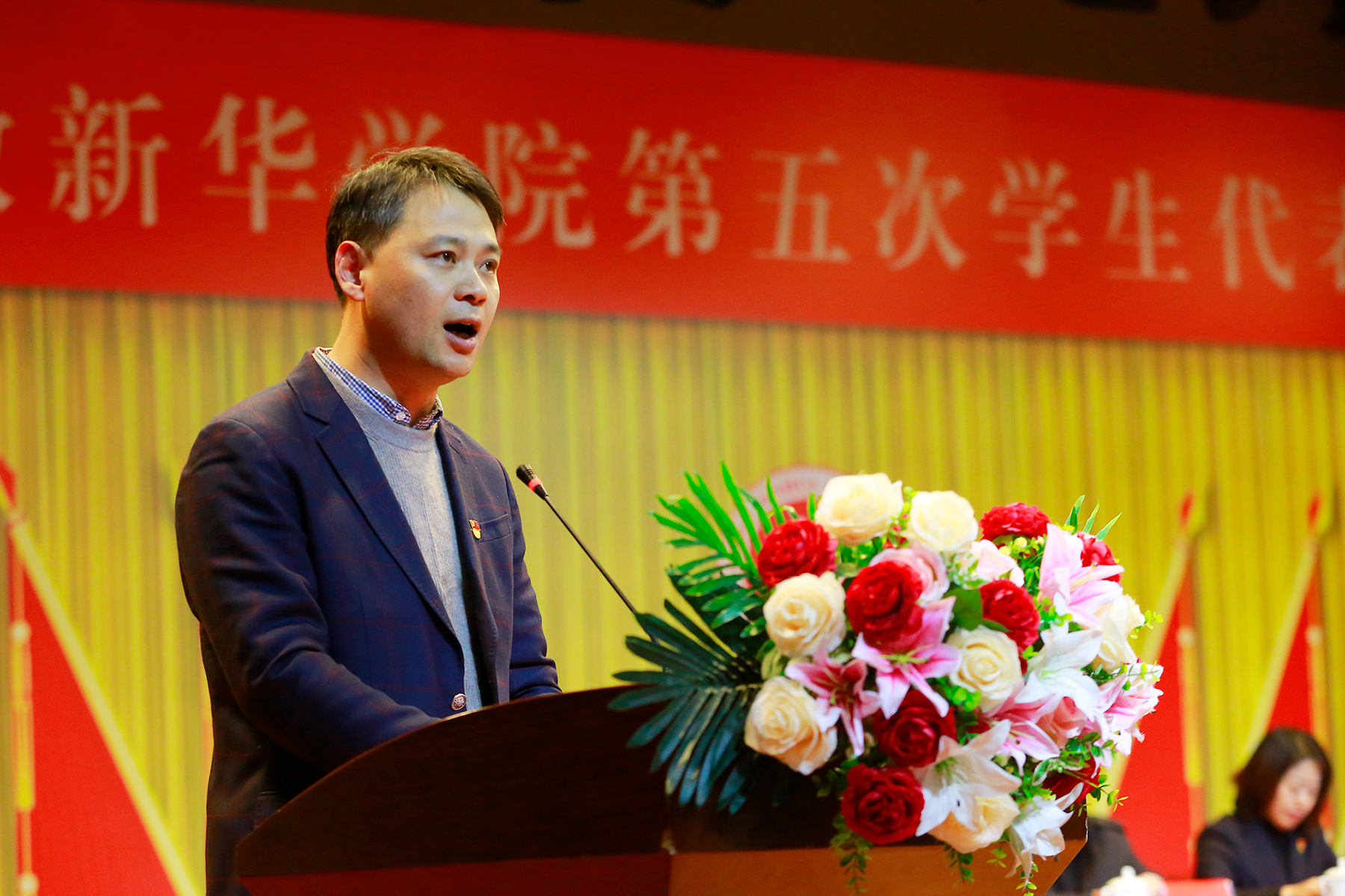 校工会代表程海青代表群众团体致辞。WilliamHill官网第四次学代会召开以来,全校各级学生会组织高举中国特色社会主义伟大旗帜,紧紧围绕学校中心工作和发展大局,大力加强学生思想政治教育,积极搭建学生成长成才平台,切实维护学生合法权益,全面推进学生会组织机制创新和自身建设,在推动科学发展、建设和谐校园中彰显了学生会组织的重要作用。希望各组织进一步解放思想、抢抓机遇、奋发作为,用我们的勤劳、智慧和汗水,为共同建设特色鲜明的高水平应用型大学,早日实现“新华梦”和“中国梦”而努力奋斗。安徽大学学生会代表陈伟俊代表兄弟高校会宣读贺信,他表示,希望兄弟高校与WilliamHill官方网站学生会组织一道,继续携手同行,不断加强党的领导,继续深化改革创新,服务广大同学成长成才,助力同学们开拓青春,砥砺前行,矢志奋斗,为党和人民的伟大事业贡献更磅礴的青春力量。