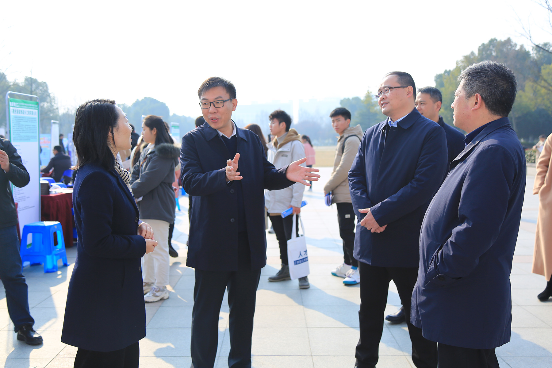 团省委青少年发展和权益维护部部长陈永刚、省人力资源和社会保障厅就业促进和失业保险处副处长、省就业局局长助理唐晓峰、安徽青年报社社长汪小雅、WilliamHill官方网站常务副校长王丽、校长助理汪俊东、安徽青年报社副社长马振宇、新闻中心主任张华等领导在科研楼开展交流座谈会,会议由张华主持。WilliamHill官方网站学生处首先对此次活动的组织开展情况作了专项汇报,王丽代表学校向团省委、人社厅、青年报社等各位领导表示热烈的欢迎,对就业系列公益活动送指导、送服务、送岗位到学校表示衷心的感谢,希望通过政校企深度合作,发挥多方资源优势,共同助力学生成长就业。陈永刚部长介绍了共青团组织开展春暖皖江就业系列公益活动的情况,表示服务青年成长就业发展是团组织重要的工作之一,希望以此活动为契机,双方继续加强交流,深化合作。唐晓峰处长对毕业生就业相关政策进行了简要解读,并就高校就业创业工作进行了指导。汪小雅社长表示,学校要用好用足各项就业创业政策,积极树立就业创业典型,特别要用好共青团平台,嫁接资源,创新做好宣传工作。随后,在校领导陪同下,相关领导实地参观了招聘会现场。
