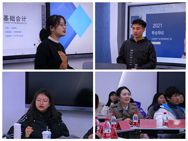 汇报会上,共建班学生代表分别汇报了学习成果与学习心得,如《先天特质》课程让他们学会自我剖析,做好职业规划,高效与人沟通的技巧;《专业导论》课程学习到财务管理专业的本质和内涵,以及云财务管理会计师的职场胜任力;《财务数字化应用基础》让他们深刻地认识到财务数据与企业业务的相关性,了解财务数智化对企业管理的解决之道;特别是在《基础会计》这门课程中,学生模拟了从建账到日常期末处理、编制会计报表等一个完整会计业务流程,并以组为单位完成情景模拟、职业道德视频制作等系列课程成果。