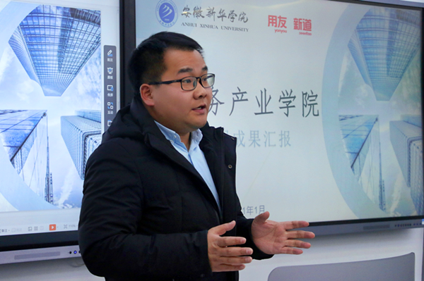 云财务产业学院自2019年6月成立以来,校企双方共同制定了新的人培方案,将区块链、财务大数据、财务共享中心规划与设计、智能财务等核心课程纳入新的课程体系,已成立两届财务管理(用友新道卓越班),在校生239人。本学期,校企双方经过师资培训、双师研讨、师生模拟等环节对教学内容及方法进行多轮论证,共建了《财务数字化应用基础》《基础会计》《专业导论》《先天特质》四门课程。