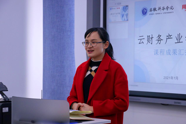 本网讯(通讯员:周杭群)为加快推进云财务产业学院发展的步伐,加强教育教学改革的成果展示,财会与金融学院于1月6日开展云财务产业学院首期课程成果汇报会。院长助理邓洁、新道科技股份有限公司项目经理康阿朋、特聘讲师黄锐、财会系全体教师,以及2019级、2020级财务管理(用友新道卓越班)学生代表参加汇报会,由驻校导师周杭群主持。