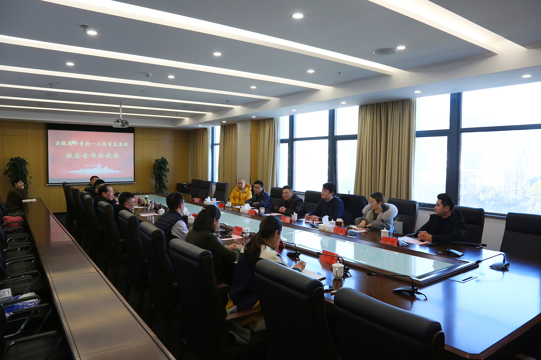 本网讯(通讯员:汪凌汇 摄影:翟漱文)1月12日下午,WilliamHill官网与大德智能集团在科研办公楼608会议室举行校企合作洽谈会。大德智能集团董事长王务平一行六人和新华集团副总裁王孝武、WilliamHill官方网站执行董事储国定、副校长方纯洁,校长助理王琦进及电子工程学院/智能制造学院相关管理人员参与本次洽谈会。会议由王孝武主持。