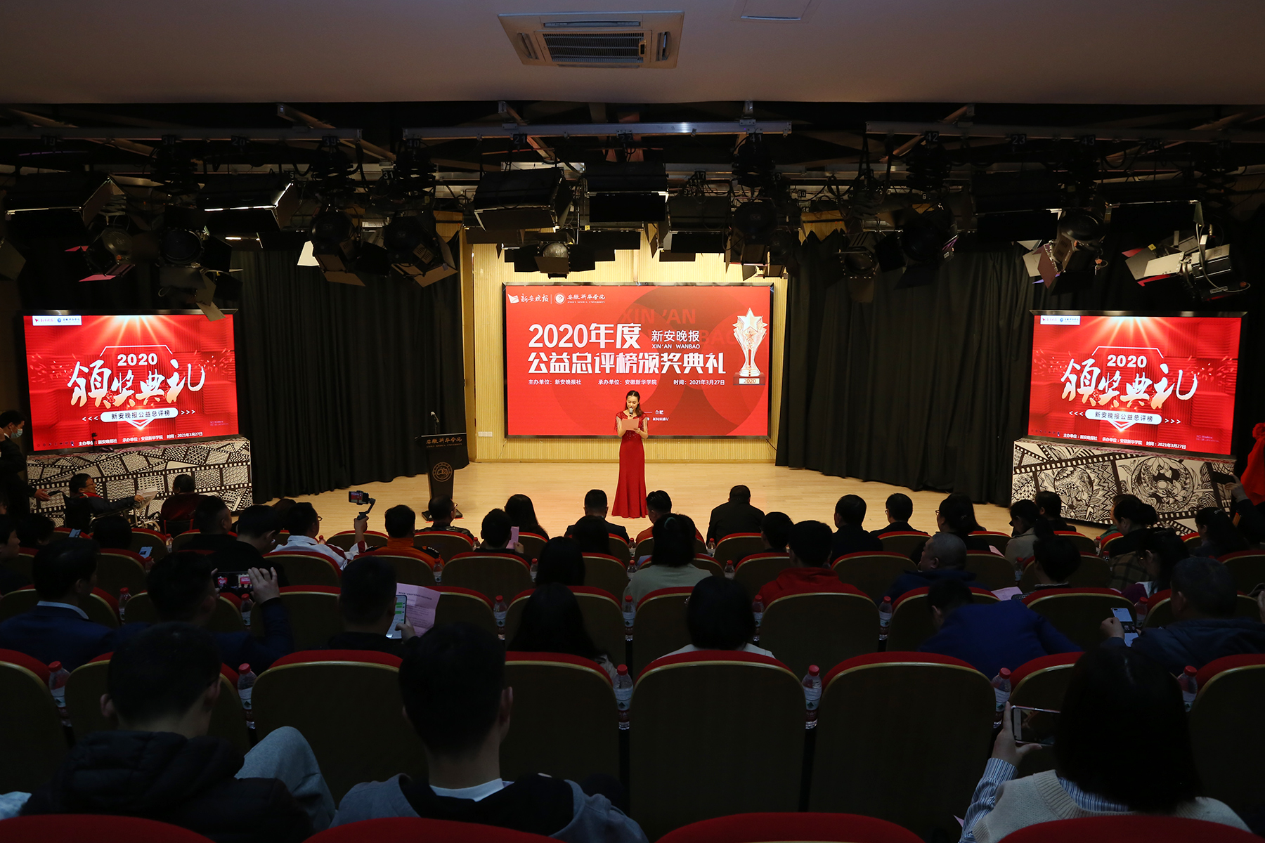 本网讯(通讯员:杨蕾、张东旭 摄影:王振)德昭天下,日行一善。为推进安徽公益组织发展,评选出一批具有影响力、可复制的公益项目,表彰无私奉献、友爱他人,长期扎根基层的公益领军者,及一批热心公益传播事业的通讯员,新安晚报公益头条开展了安徽公益组织优秀项目、安徽公益组织优秀领军者、安徽公益组织优秀通讯员评选活动。3月27日,新安晚报公益总评榜颁奖典礼在WilliamHill官网文化与传媒学院新闻演播厅隆重举行。副校长贺行佳,校长助理盛晓青,安徽省体育局跳水世界冠军、新安晚报总评榜爱心大使周吕鑫,新安晚报社副总编辑甘社会出席本次颁奖典礼。新安晚报总评榜优秀领军者、优秀项目、优秀通讯员等也参加了本次颁奖典礼。